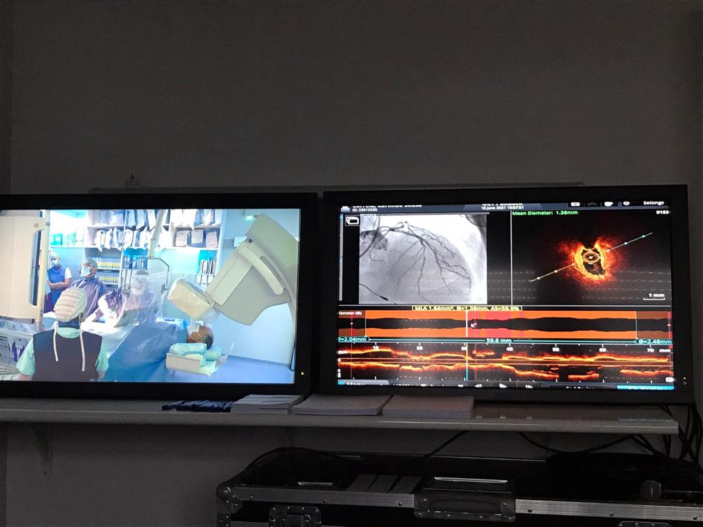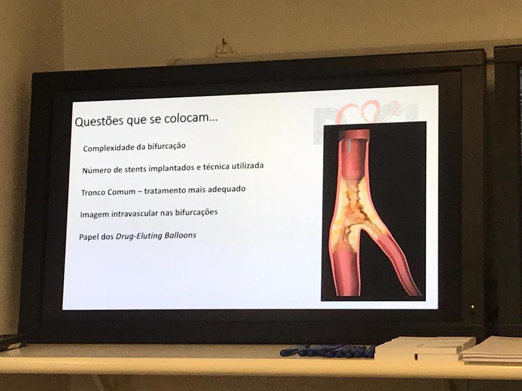 Foram tratados, com sucesso e sem complicações, dois pacientes com bifurcações a envolver a descendente anterior e os ramos diagonais, um com a técnica de provisional stenting e outro com a técnica de TAP. Após resultado subótimo do provisional stenting. No tratamento destas lesões não faltou a utilização de técnicas de fisiologia e de imagem intracoronária (OCT), que permitiram guiar a melhor estratégia de intervenção, sempre pautada por uma discussão muito interativa com os participantes.